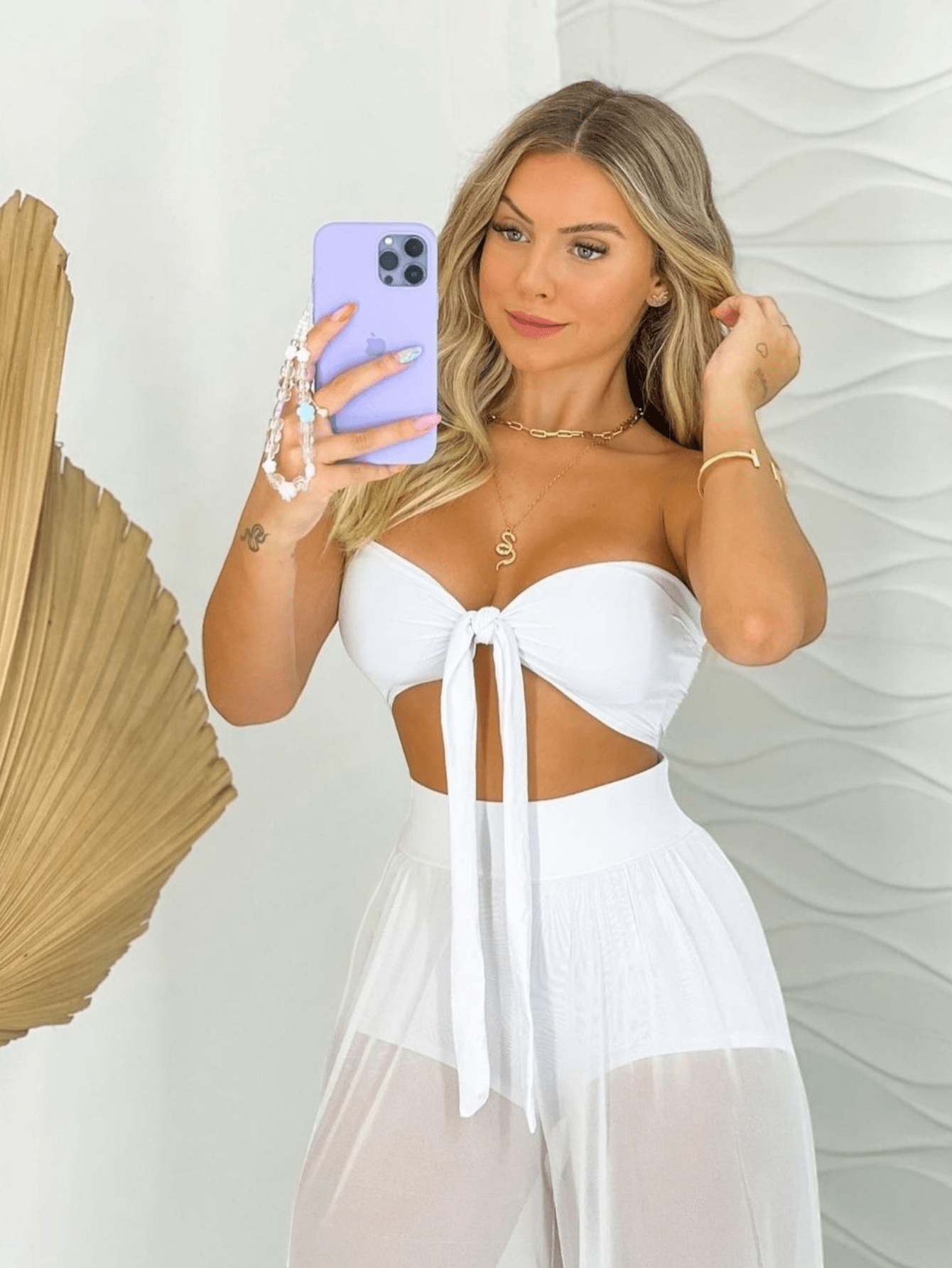 Feito em tule de alta qualidade, o cropped possui um design moderno e delicado, enquanto a calça tem um corte impecável que valoriza as curvas femininas. Juntos, eles formam um conjunto incrível que vai te fazer se destacar em qualquer ocasião.