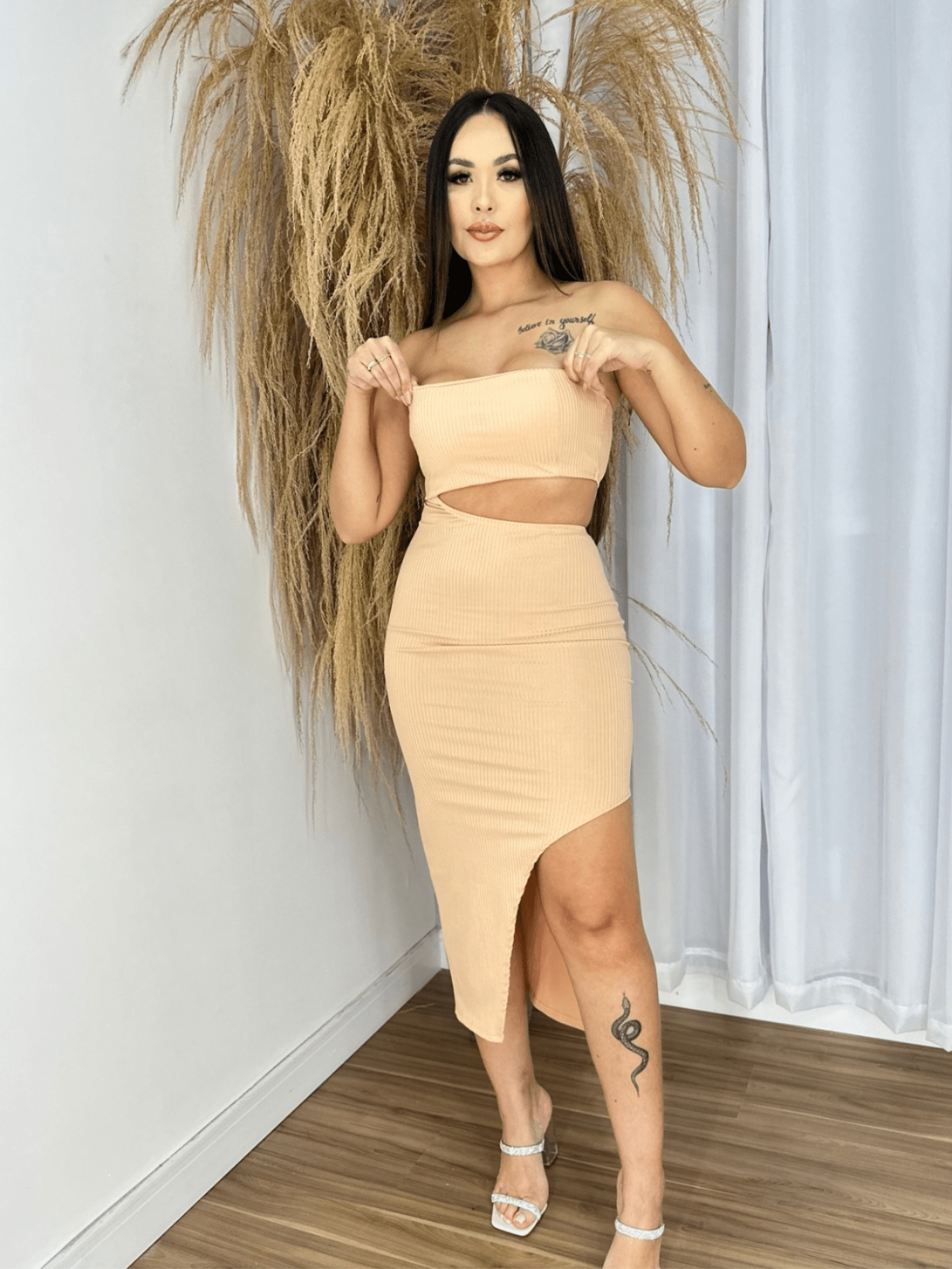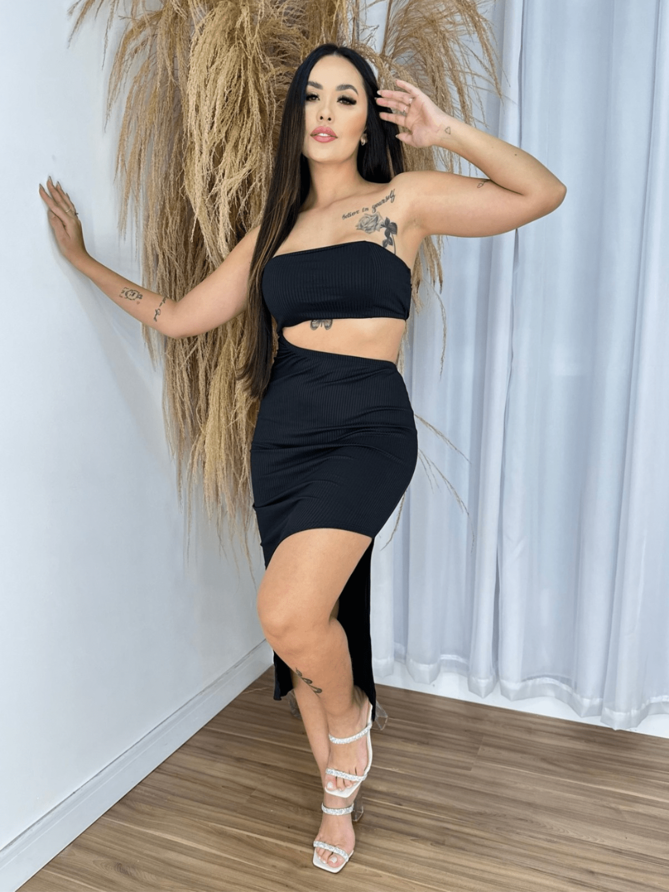 Com um design elegante e sofisticado, este vestido é a representação da confiança e estilo da nossa marca. Feito com tecidos de alta qualidade e um corte impecável, cada detalhe foi cuidadosamente pensado para garantir que você se sinta poderosa e confiante ao usá-lo.