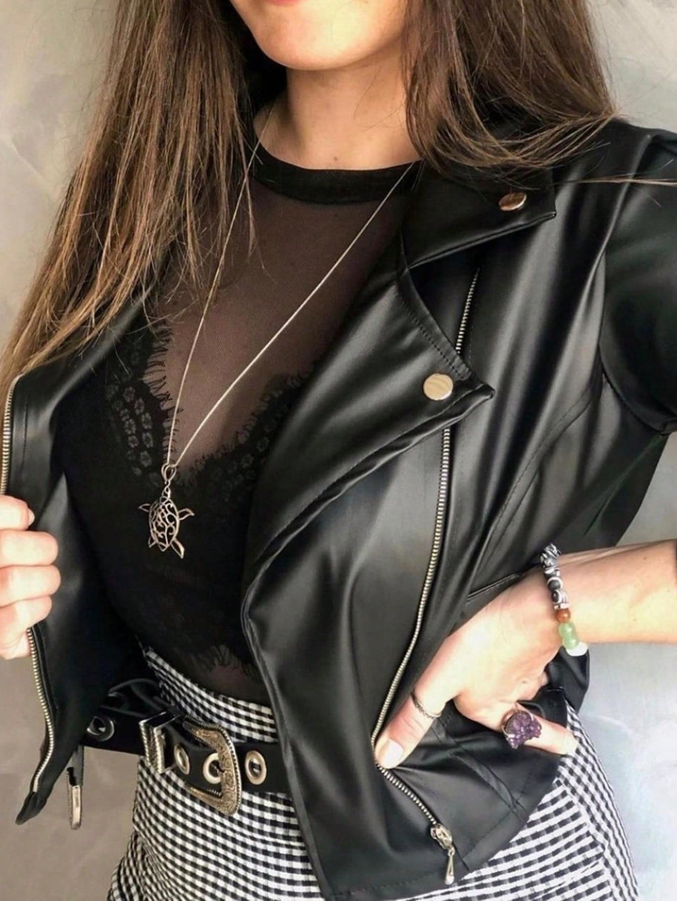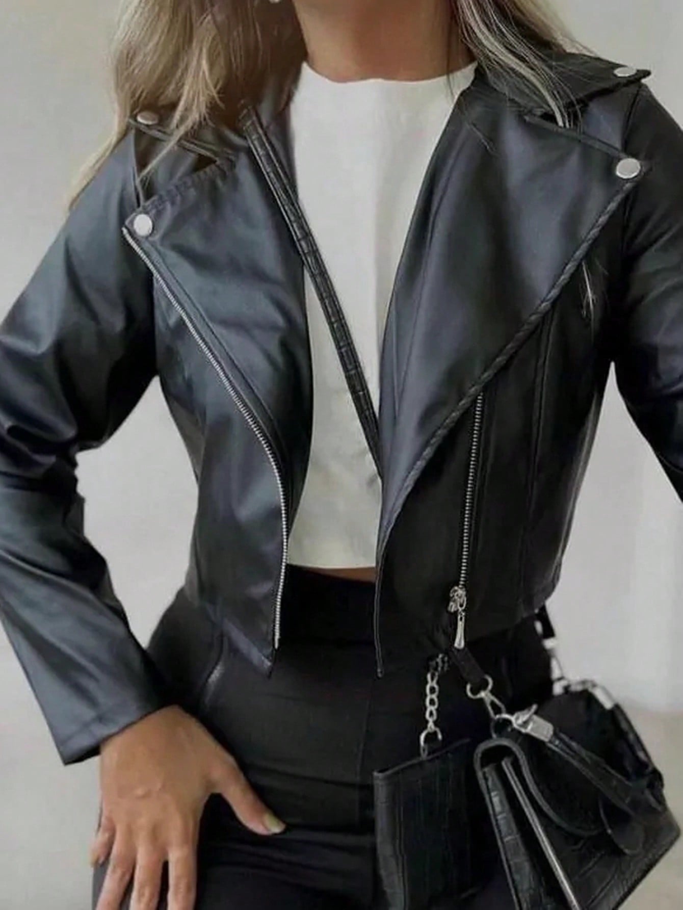 Jaqueta De Couro Manga Longa, Moça Moderna